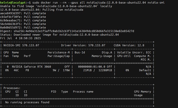 In minder dan een dag heb ik het Qwen2.5-14B-instruct model werkend gekregen op mijn eigen RTX 3060, volledig gecontaineriseerd via Docker en met GPU-support.
